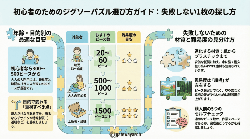 👉 この表を参考にすると、自分や贈る相手に合ったパズルを直感的に選びやすくなります。