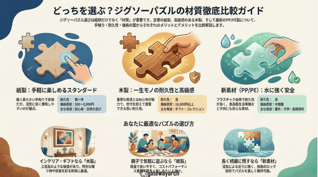 木製か紙製か?ジグソーパズルの材質比較と選び方|手触り・耐久性・価格まで徹底解説