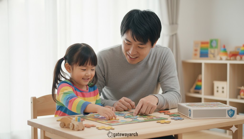 文部科学省の「幼児期の教育の基本” によれば、親子での協同的な遊びは「非認知能力(協調性・粘り強さ)」の育成に寄与するとされています。パズルを親子で一緒に組むことはその実践例のひとつです。
