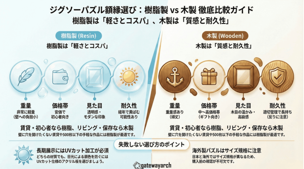 樹脂 vs 木製フレーム|見え方・重さ・価格で徹底比較するジグソーパズル額縁の選び方